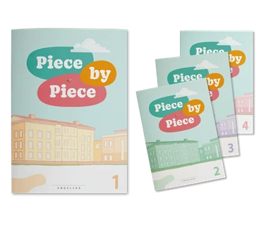 Piece by Piece består av elevbok, digitala övningar samt utskrivbart material, och eleverna tränar samma språkliga innehåll på många olika sätt. Till läromedlet finns en lärarhandledning med förslag på hur du kan arbeta.