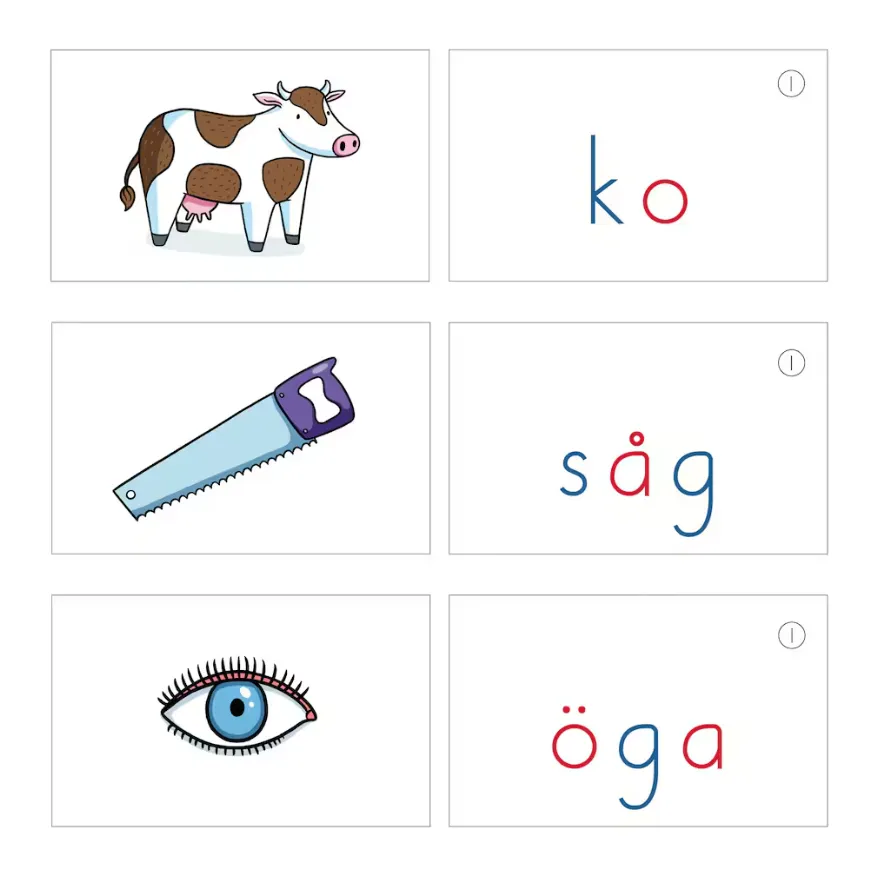 Våra skrivkort är ett utmärkt verktyg för att låta eleverna påbörja sin skrivutveckling. Korten är dubbelsidiga, ordet illustreras med en klar och tydlig bild på framsidan och är skrivet med bokstäver på baksidan. Konsonanterna är blå och vokalerna röda, och typsnittet som används är Beta Pedagog Skolstil.